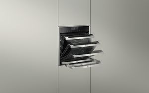 Der erste 90 Zentimeter breite Backofen im europäischen Markt sorgt für ein großes Nutzvolumen von 87 Litern und bietet Raum für bis zu vier Braten. Der EB 300 entwickelt sich zur Ikone. | |||